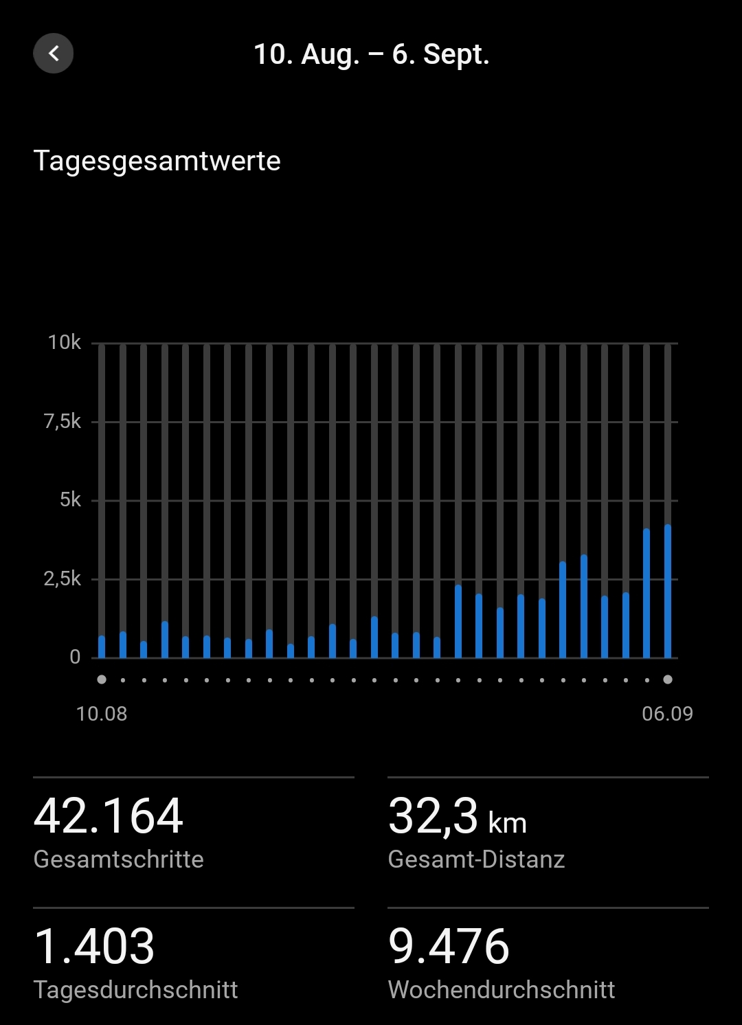 Am nächsten Tag folgte dann eine weitere Wanderung, diesmal 6,47 Kilometer und ebenfalls 230 Höhenmeter. Diese lief sogar noch besser und ich konnte nahezu normal gehen. Man hätte es mir vermutlich nicht mehr angesehen, dass ich mir vor drei Monaten die Kniescheibe gebrochen habe.